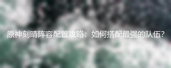刻晴是原神中的强力输出角色,如何配置最合适的阵容呢?下面为大家介绍一套高效的刻晴阵容配置攻略。