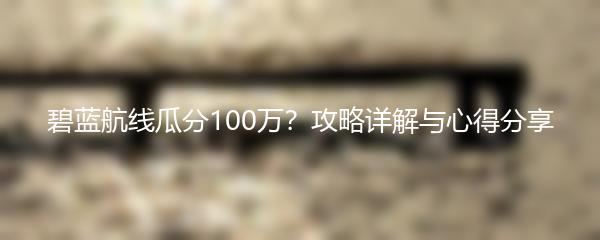 以上就是小编为大家带来的碧蓝航线瓜分100万的攻略详解与心得分享。希望这些技巧能够帮助到正在参与活动的玩家们,祝大家好运!