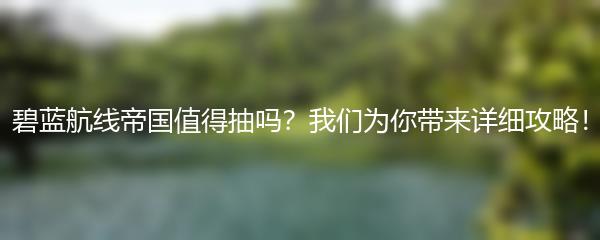 以上就是小编为大家带来的碧蓝航线帝国值得抽吗?的详细攻略。希望能够帮助到各位玩家,祝大家在帝国的航海世界中取得巨大的成功!