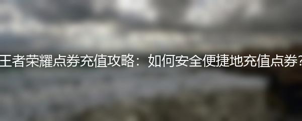 王者荣耀是一款风靡全球的手机MOBA游戏,点券是游戏内的充值货币,可以用来购买英雄、皮肤等道具。想要在游戏中获得更好的体验,充值点券是必不可少的。本攻略将为您介绍如何安全便捷地充值点券,让您的游戏之路更加畅通无阻。