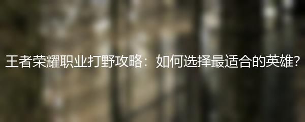王者荣耀是一款热门的多人在线游戏,打野是其中一项重要的职业。作为打野选手,选择合适的英雄是取胜的关键。那么,如何选择最适合的英雄呢?本文将为您介绍一些实用的打野英雄选择技巧。