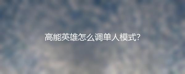 高能英雄怎么调单人模式攻略