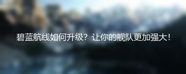 碧蓝航线是一款受欢迎的战略养成游戏,游戏中玩家需要通过升级舰队来应对不同的战斗挑战。那么,如何才能有效地升级舰队呢?本篇攻略将为你详细介绍。