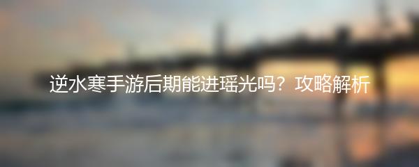 以上就是小编为大家带来的“逆水寒手游后期能进瑶光吗?”的攻略解析。希望对所有玩家能够顺利进入瑶光地图提供一些帮助,尽情享受游戏中的精彩内容吧!