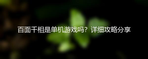 百面千相是一款备受关注的游戏,许多玩家都对它充满了好奇。那么,百面千相到底是不是一款单机游戏呢?接下来,我们来详细探讨一下。