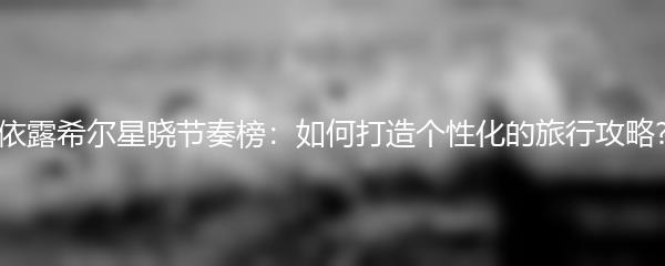 以上就是小编为大家带来的依露希尔星晓节奏榜:如何打造个性化的旅行攻略?
