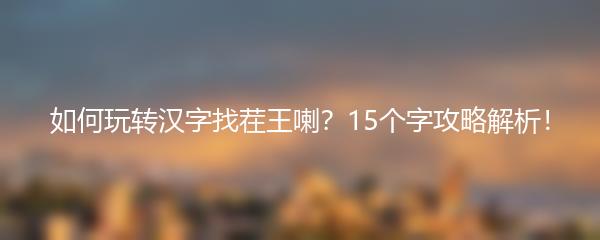 以上就是小编为大家带来的如何玩转汉字找茬王喇的15个字攻略解析!快来挑战一下吧,相信你一定能够成为汉字找茬王喇的王者!