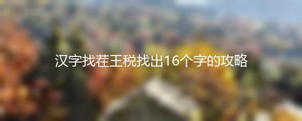 以上就是小编为大家带来的汉字找茬王税找出16个字的攻略。希望这些技巧能够帮助你在游戏中取得好成绩。快来挑战吧!