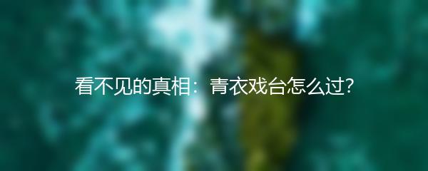 以上就是小编为大家带来的看不见的真相:青衣戏台怎么过?的攻略。希望能够帮助您更好地欣赏和理解青衣戏台的魅力。