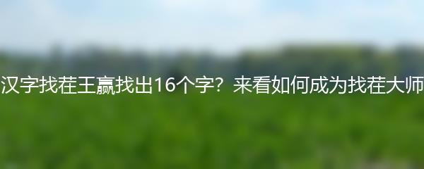 以上就是小编为大家带来的汉字找茬王赢找出16个字的攻略。通过提升观察力、学会利用辅助工具、学会分析汉字的结构和特点,以及保持耐心和放松的心态,相信你也可以成为找茬大师!开始挑战吧!