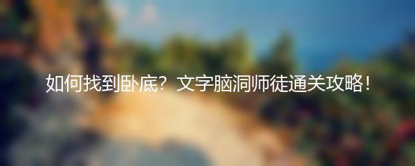 以上就是小编为大家带来的《如何找到卧底?文字脑洞师徒通关攻略!》。希望这些攻略能帮助您顺利解锁游戏的所有谜团,探索更多有趣的游戏内容!