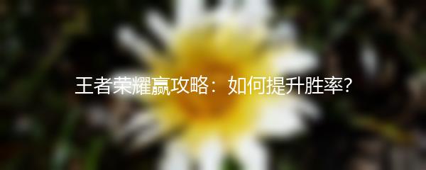 以上就是小编为大家带来的王者荣耀赢攻略,希望对您有所帮助。只要掌握了这些攻略,相信您的胜率一定会有所提升。赶紧行动起来,一起开启胜率的征程吧!