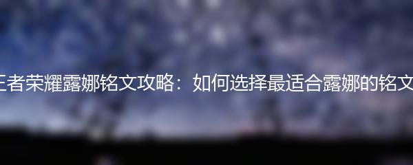 以上就是关于王者荣耀露娜铭文攻略的分享。选择合适的铭文可以帮助你发挥露娜的优势,提升战斗力。希望以上内容对你有所帮助。