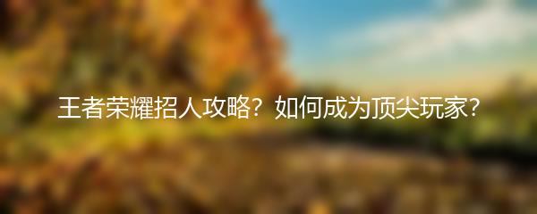 以上就是小编为大家带来的王者荣耀招人攻略,希望对大家在游戏中取得更好的成绩有所帮助。加油,成为顶尖玩家!