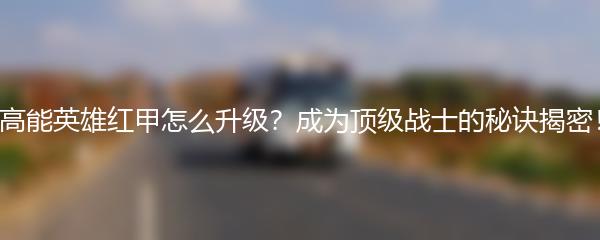 作为高能英雄,红甲的升级是成为顶级战士的关键。下面是一些升级的秘诀,让你的红甲更加强大!