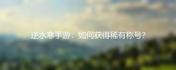逆水寒手游是一款备受玩家喜爱的多人在线角色扮演游戏,玩家可以在游戏中体验沉浸式的古风世界。与其他玩家一同探索、战斗、交流是游戏的核心乐趣之一。在游戏中,获得稀有称号是许多玩家追寻的目标之一。那么,如何获得逆水寒手游的稀有称号呢?接下来,让我们一起来看看。