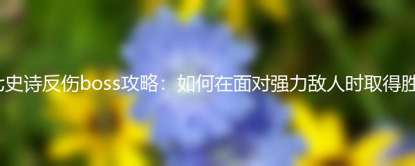第七史诗反伤boss是游戏中的一个强力敌人,他的反伤技能给玩家带来了巨大的威胁。那么,在面对这个boss时,我们应该如何取得胜利呢?下面就为大家详细介绍一些攻略心得。