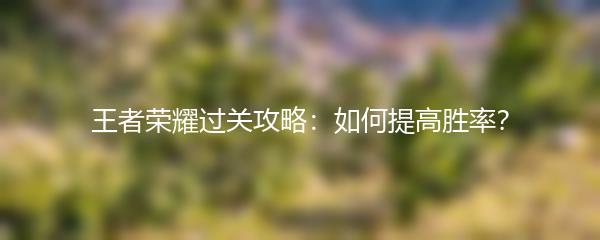 王者荣耀作为国民级手游,吸引了数亿玩家的关注。但是,许多玩家在游戏中遇到了过关难题,一直困扰着他们。那么,如何提高胜率?接下来,小编将为您分享一些王者荣耀过关攻略。