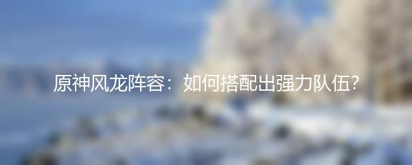 以上就是小编为大家带来的《原神风龙阵容:如何搭配出强力队伍?》的攻略。希望对大家在游戏中搭建风龙阵容有所帮助!