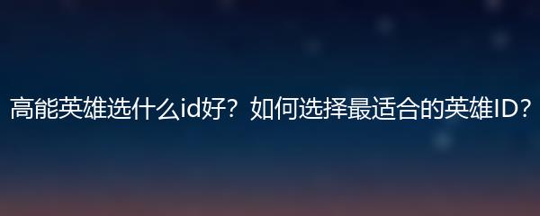 在高能英雄游戏中,选择一个适合自己的英雄ID是非常重要的。下面是一些建议,帮助你选择最合适的英雄ID: