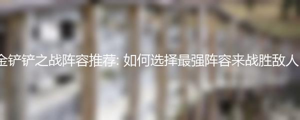 在金铲铲之战中,选择一个强大而又合适的阵容是非常重要的。毕竟,只有通过良好的队伍组合,才能在这场激烈的战斗中取得胜利。那么,如何选择最强阵容来战胜敌人呢?接下来,就让我们一起来看看吧。