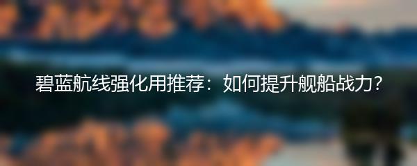 碧蓝航线是一款非常受欢迎的舰娘养成游戏,舰船强化是提升战力的关键。如果你想知道如何有效地强化舰船,就来看看下面的推荐吧!