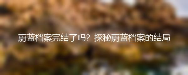 蔚蓝档案,这部备受瞩目的电视剧,自开播以来就吸引了众多观众的关注。然而,就在大家纷纷讨论剧情发展的同时,一道疑问笼罩在观众们的脑海中:蔚蓝档案完结了吗?这部剧究竟有没有正式收官?