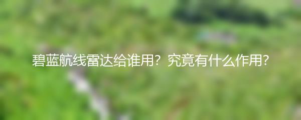 碧蓝航线,作为一款备受玩家喜爱的手游,吸引了众多玩家的注意。其中,雷达作为游戏中重要的装备之一,为舰队的战斗提供了重要的支援。那么,究竟碧蓝航线雷达给谁用?又有什么作用呢?下面就让我们一起来了解一下吧!