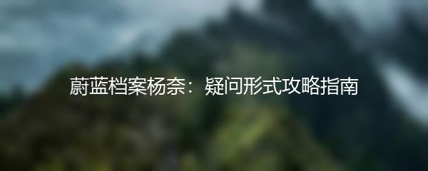 以上就是小编为大家带来的蔚蓝档案杨奈:疑问形式攻略指南。无论你是喜欢推理小说还是科幻奇幻作品的读者,都不容错过这部精彩的作品。快来一起探索杨奈的世界吧!