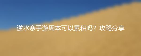 以上就是小编为大家带来的《逆水寒手游周本可以累积吗?攻略分享》的内容。希望这些攻略能够帮助到各位玩家,享受逆水寒手游带来的乐趣!