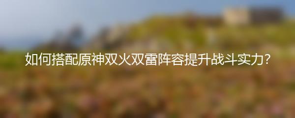 以上就是如何搭配原神双火双雷阵容提升战斗实力的攻略。希望对大家有所帮助,祝愿大家在原神世界中战无不胜!