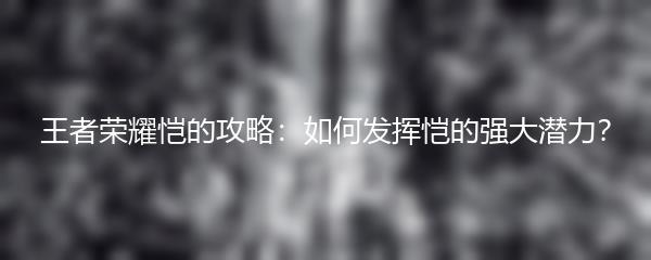 以上就是小编为大家带来的王者荣耀恺的攻略。掌握恺的技能组合和特点,并合理运用他的技能、选择合适的装备、与队友合作,你将能够在战场上发挥出恺的强大潜力,成为一名出色的恺玩家!