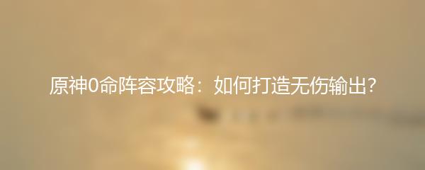 以上就是小编为大家带来的原神0命阵容攻略:如何打造无伤输出?希望对大家有所帮助!