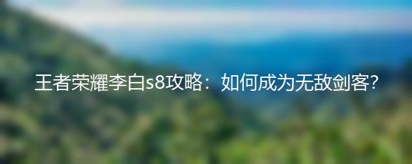 以上就是小编为大家带来的王者荣耀李白s8攻略,希望能够帮助到各位玩家。通过熟悉技能组合、构建合适的装备、使用辅助技巧和锁定目标打击,相信你也能成为无敌剑客李白,斩杀敌人的最强王者!加油!