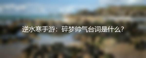 以上是逆水寒手游中一些令人印象深刻的碎梦帅气台词,这些台词不仅展示了游戏中角色的个性和情感,同时也启发着玩家思考人生和成长的道路。