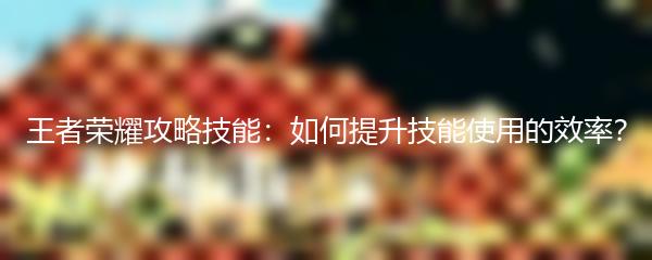 王者荣耀是一款非常受欢迎的游戏,技能的使用对于玩家取得胜利至关重要。如何提升技能使用的效率?下面为大家分享几点攻略: