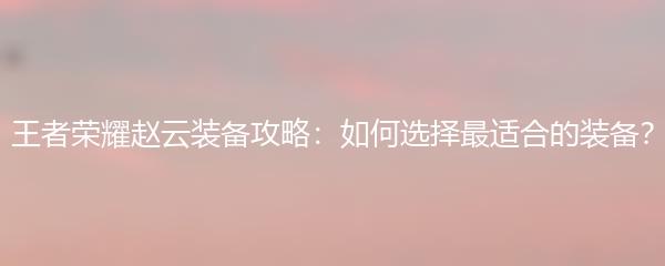 赵云是《王者荣耀》中一位非常强大的战士,他拥有爆发力强、机动性高的特点。在游戏中,选择合适的装备可以提升赵云的战斗能力,增加他的生存能力和输出能力。那么,你是否想知道如何选择最适合赵云的装备呢?下面就为大家介绍赵云的装备攻略。