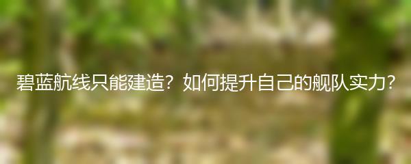 碧蓝航线是一款备受玩家喜爱的舰队收集养成游戏,但很多玩家面临一个问题:碧蓝航线只能建造吗?实际上,除了建造舰船,还有许多方法可以提升自己的舰队实力。在本篇攻略中,我们将为您介绍一些有效的提升舰队实力的方法。