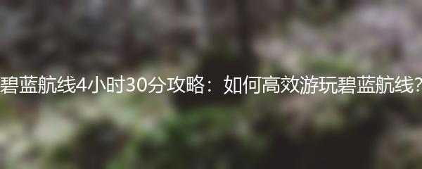 以上就是小编为大家带来的碧蓝航线4小时30分攻略:如何高效游玩碧蓝航线?希望这些攻略能帮助大家在有限的时间内尽情享受碧蓝航线的乐趣。快来挑战自己,在4小时30分内成为航海王吧!
