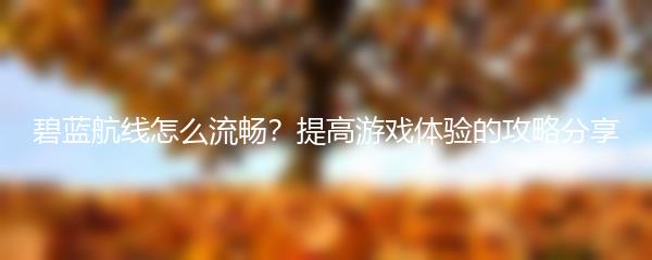 以上就是小编为大家带来的《碧蓝航线怎么流畅?提高游戏体验的攻略分享》。希望这些方法能够帮助到大家,让你的碧蓝航线之旅更加畅快!
