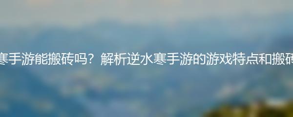 逆水寒手游作为一款备受热爱玩家追捧的武侠类手游,因其精美的画面、丰富的剧情和深度的游戏玩法而深受欢迎。那么,逆水寒手游真的可以通过搬砖来获得游戏收益吗?下面就让我们来解析逆水寒手游的游戏特点和搬砖方式。