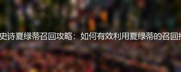 为了使夏绿蒂的召回技能更加强大,我们可以通过升级技能、装备合适的装备和培养符合夏绿蒂特点的天赋等方式来提升她的战斗力和支援效果。