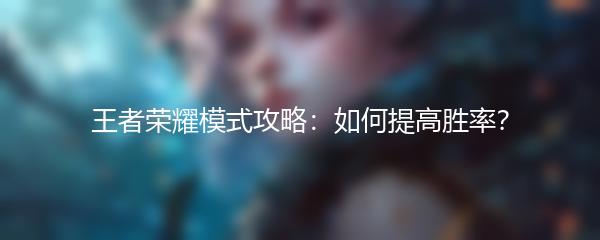 以上就是小编为大家带来的“王者荣耀模式攻略:如何提高胜率?”本篇攻略希望对大家有所帮助,祝各位在游戏中取得好成绩!