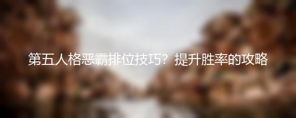 第五人格是一款具有策略性和团队合作性的对战游戏。要在排位赛中脱颖而出,并成为恶霸,你需要一些技巧和策略。本文将为你提供一些胜率提升的攻略,帮助你在第五人格排位中取得更好的成绩。
