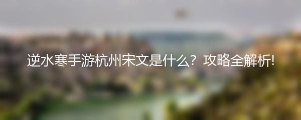 以上就是小编为大家带来的《逆水寒手游杭州宋文是什么?攻略全解析!》。希望本文能够帮助到各位玩家,祝您在游戏中取得好成绩!