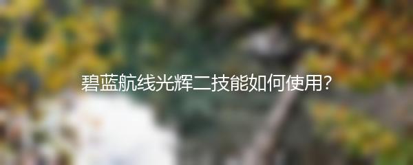 碧蓝航线是一款深受玩家喜爱的船舰收集养成手机游戏。其中光辉是游戏中的一名可爱的角色,她的二技能是非常强大的。那么,碧蓝航线光辉二技能如何使用呢?下面就为大家详细介绍。