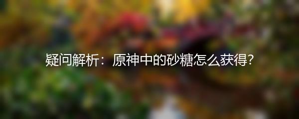 以上就是小编为大家带来的疑问解析:原神中的砂糖怎么获得的攻略。希望对正在寻找砂糖的玩家有所帮助。在获得砂糖后,记得要合理利用她的技能,为你的冒险之旅添砖加瓦哦!