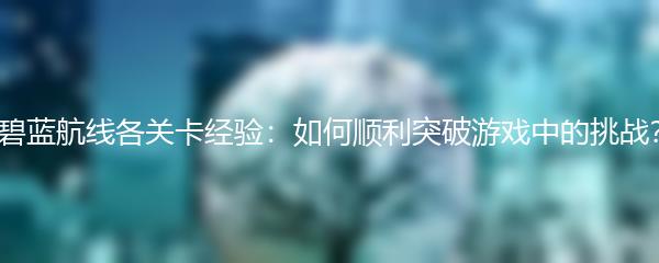 碧蓝航线是一款备受玩家喜爱的航海角色扮演游戏,玩家需要组建自己的舰队与敌人战斗。但是在游戏的各个关卡中,会遇到各种挑战。接下来,我们来分享一些碧蓝航线各关卡的经验,帮助你顺利突破游戏中的难关。