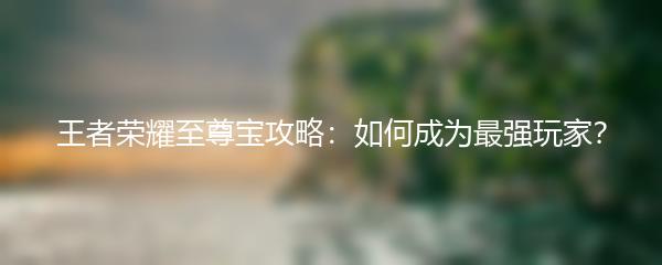 以上就是小编为大家带来的王者荣耀至尊宝攻略:如何成为最强玩家?祝您在游戏中取得巨大的成功!
