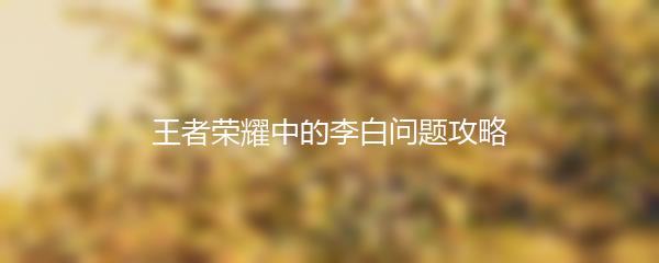 以上就是小编为大家带来的王者荣耀中的李白问题攻略,希望能够帮助到大家。